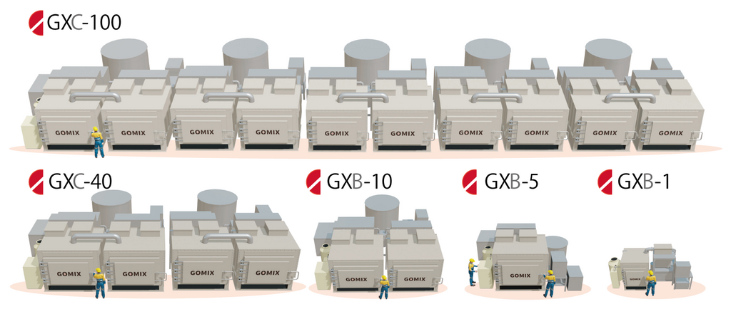 GOMIXは必要環境に応じて処理量1㎥~100㎥の5タイプをラインナップしています。